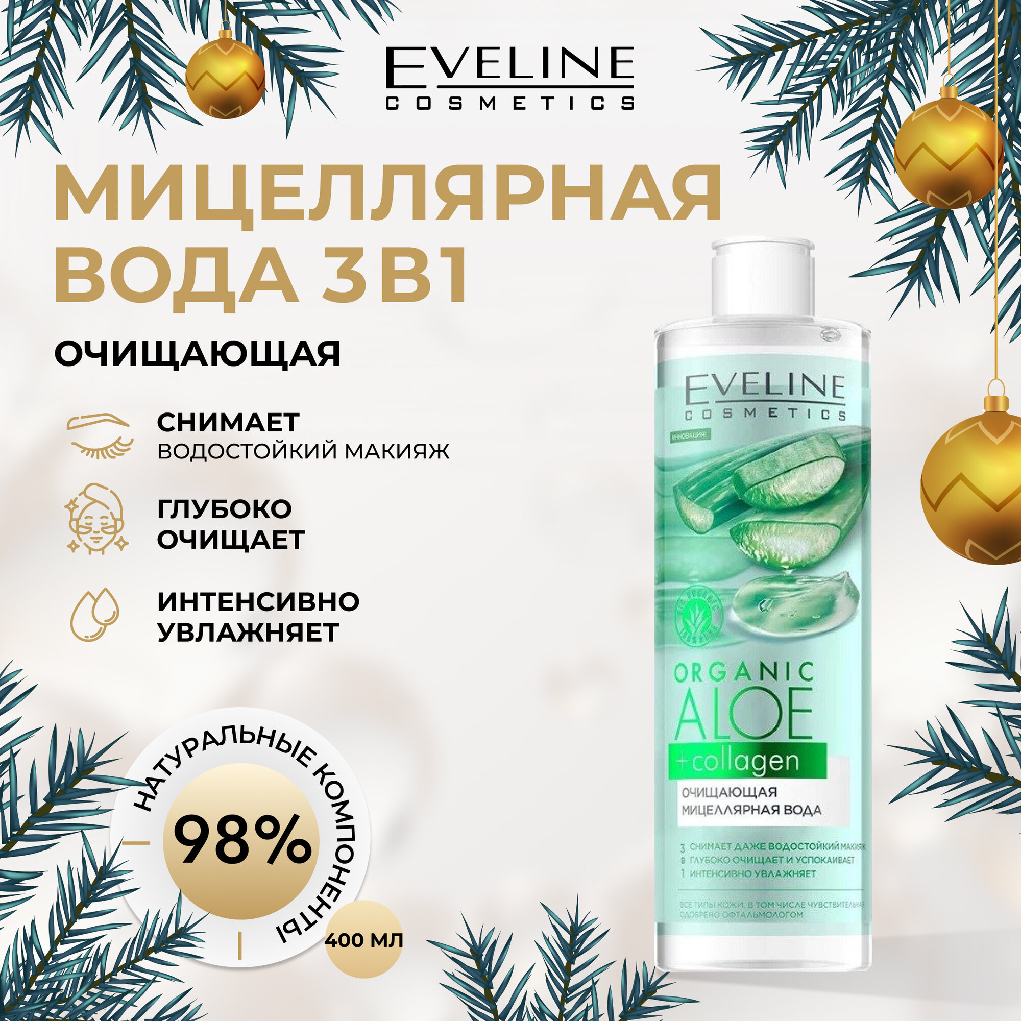 Мицеллярная вода EVELINE ORGANIC Алое + Коллаген (очищающая) 400 мл информация: