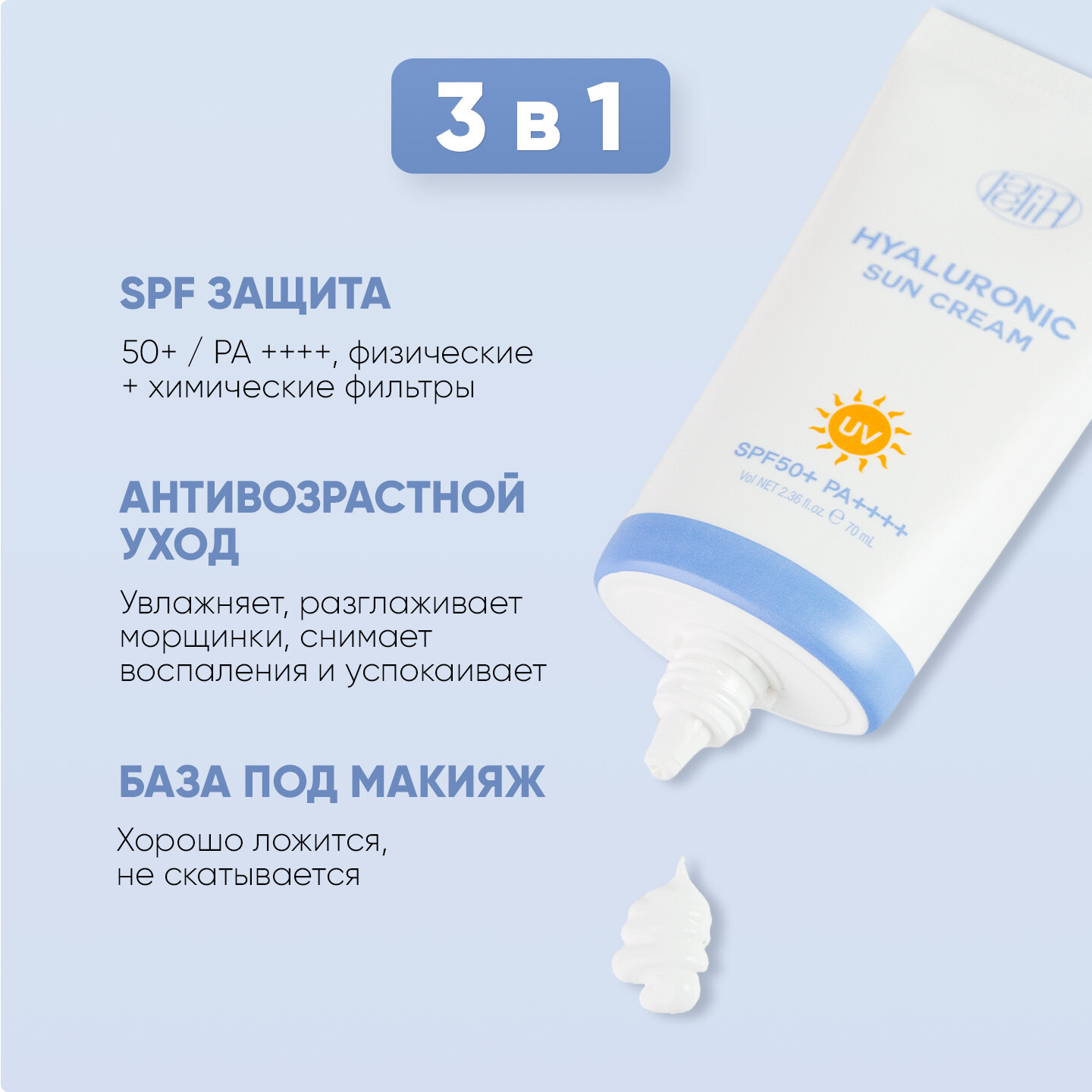 Отзывы на Увлажняющий солнцезащитный крем Lamelin Sun Cream SPF50 PA+++ с гиалуроновой кислотой 70мл