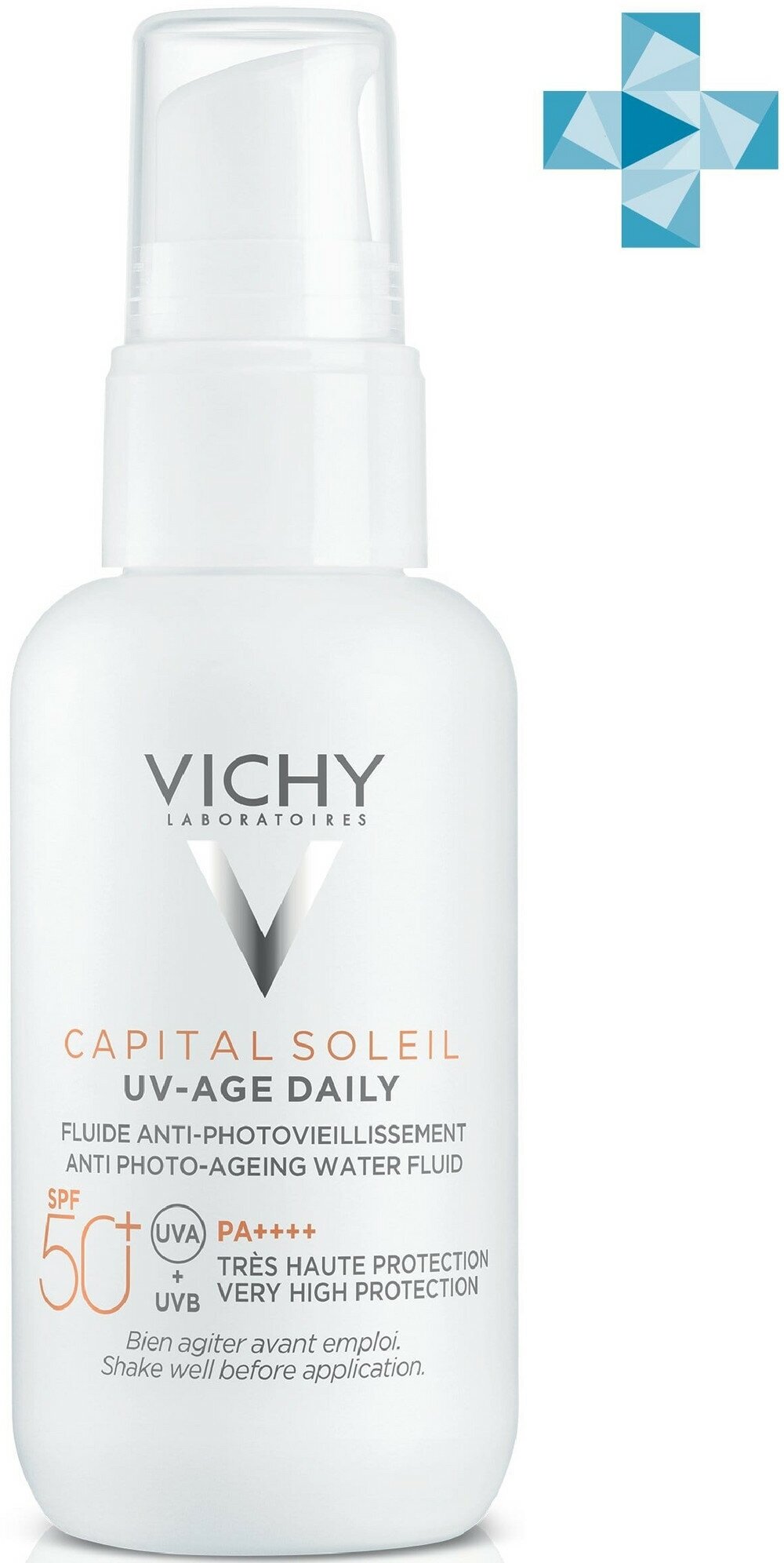 10 цен на VICHY Невесомый солнцезащитный флюид для лица против признаков фотостарения UV-Age Daily SPF 50+, 40 мл