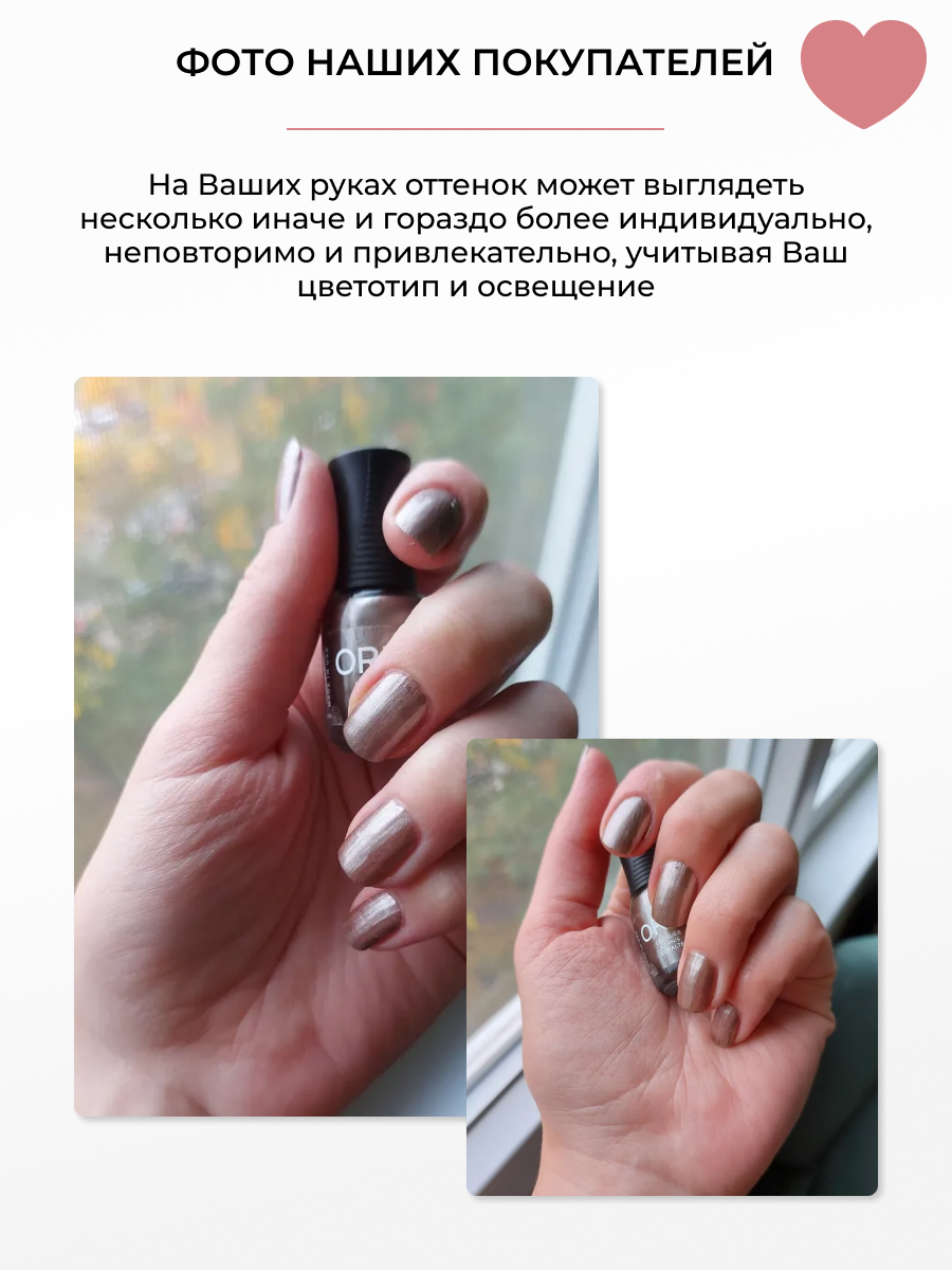 | Способ применения | хорошо перемешайте лак. Нанесите первый тонкий слой, дайте высохнуть 1-2 минуты, нанесите второй слой (гораздо лучше два тонких слоя лака, а не один толстый). Кисточкой с капелькой лака коснитесь середины ногтя, и ведите её к краю. Второе движение кисточкой вверх по ногтю, к линии кутикулы так, чтобы между лаком и задним валиком осталось маленькое свободное пространство. Оставшимся на ногте лаком аккуратно закрасьте боковые стороны ногтя. "Запечатайте" торец ногтя последним движением. Таким же образом наносится и второй слой |