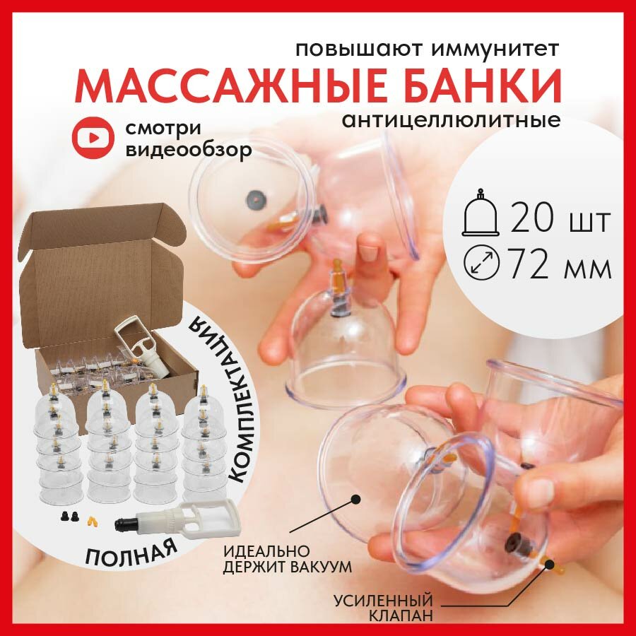 Отзывы на Вакуумные банки Сабамед для массажа и хиджамы, антицеллюлитные, массажные, набор 20 шт 72мм, с насосом