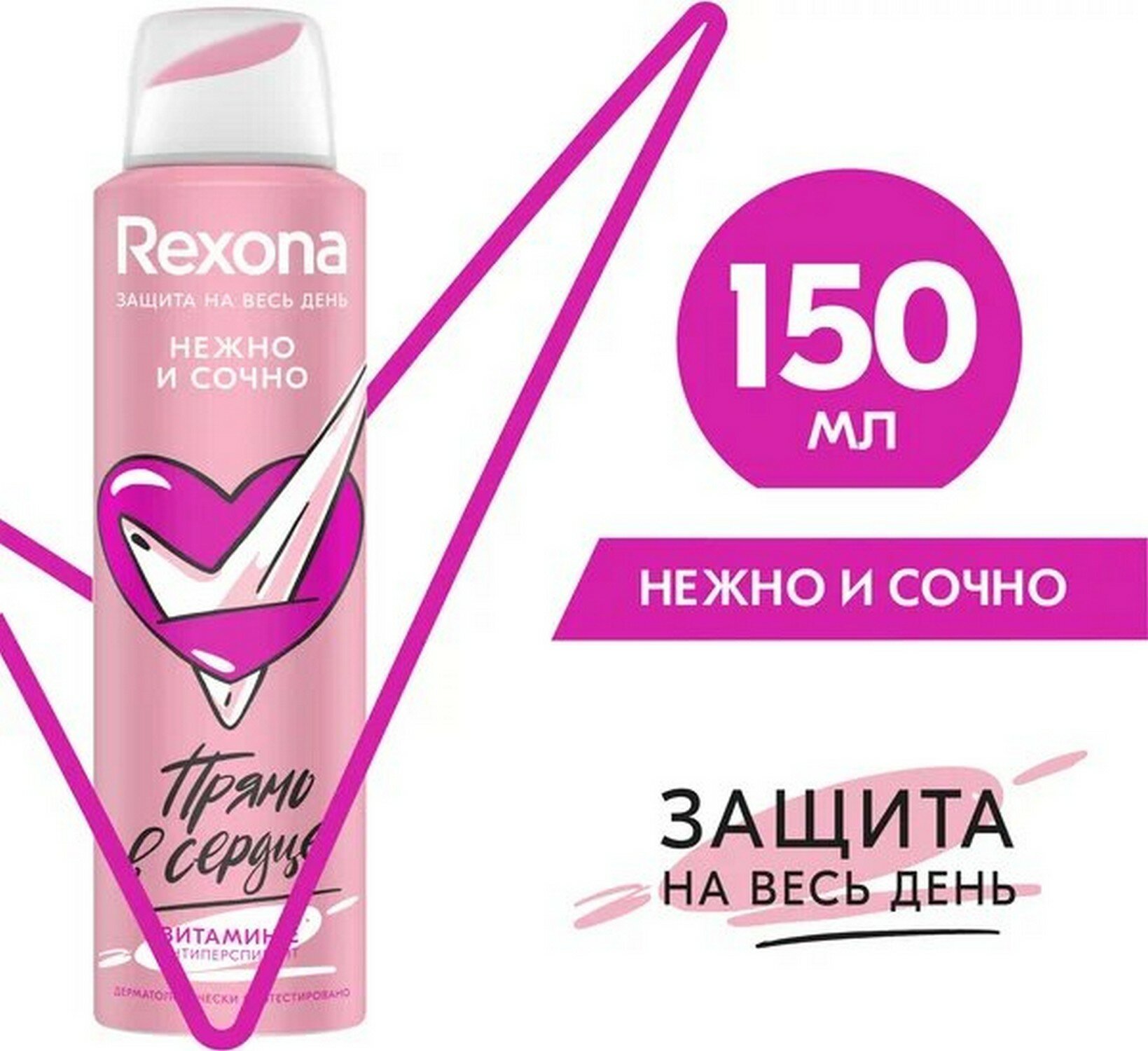Rexona Дезодорант-антиперспирант аэрозоль Нежно и Сочно с витамином Е, без спирта 150 мл - 2 шт информация: