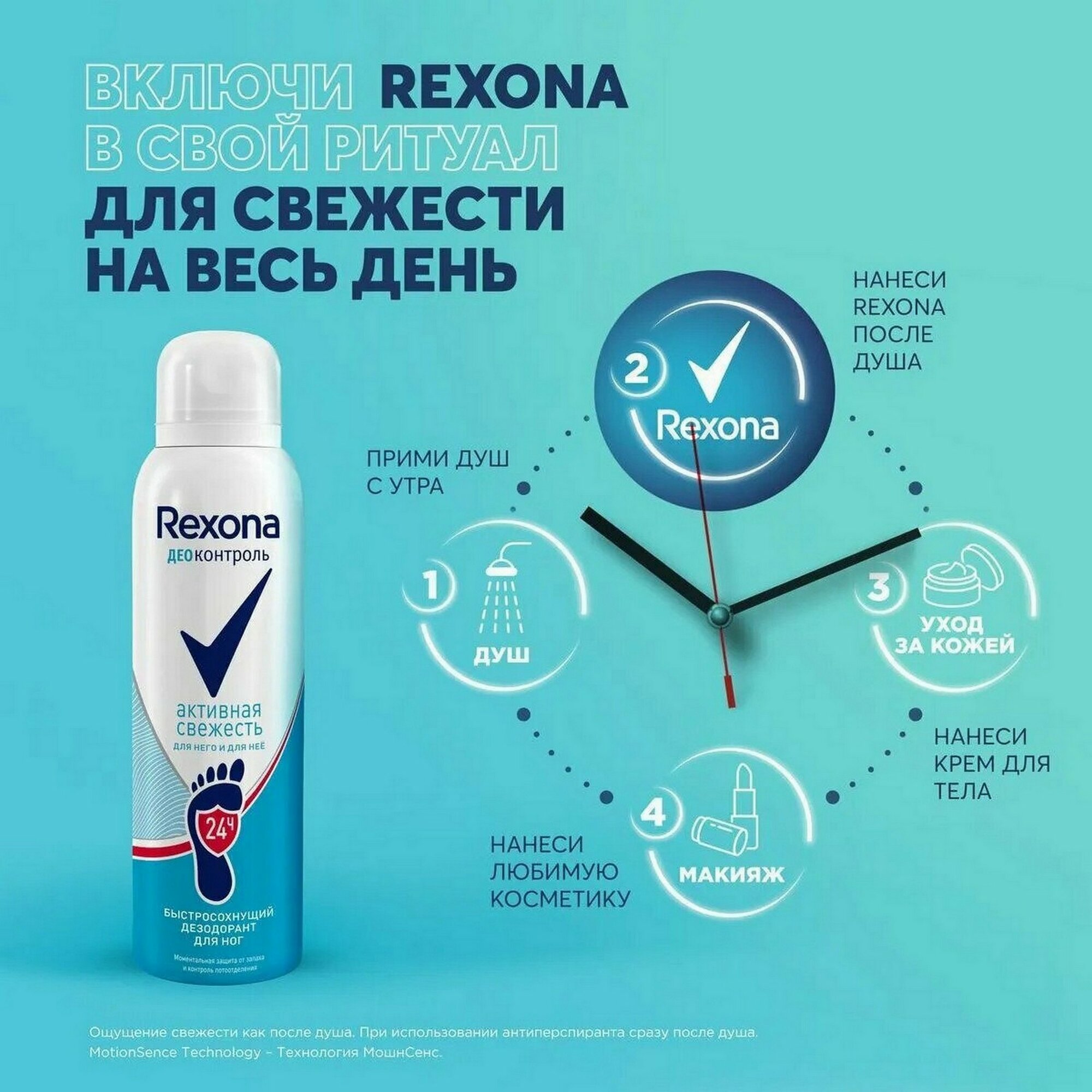 Rexona Дезодорант-спрей для ног Деоконтроль Активная свежесть быстросохнущий защита на 24 часа 150 мл - 6 шт 1 972 ₽