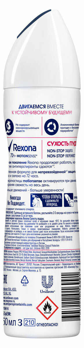 10 цен на Дезодорант антиперспирант Сухость пудры, спрей, 150 мл, Rexona