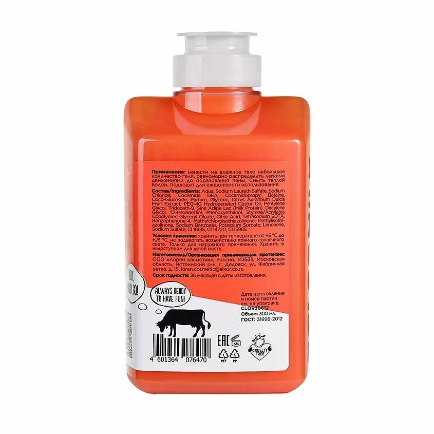 | Способ применения | Насти на влажное тело небольшое количество геля, равномерно распределить легкими движениями до образования пены. Смыть теплой водой. Подходит для ежедневного наружного применения. Избегайте попадания в глаза! |