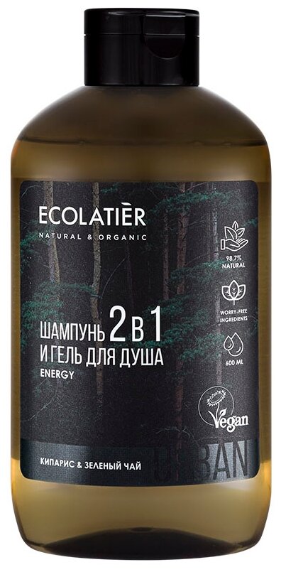 Отзывы на Ecolatier, Ecolatier Шампунь-гель мужской для душа 2 в 1 "Кипарис и зелёный чай", 600 мл