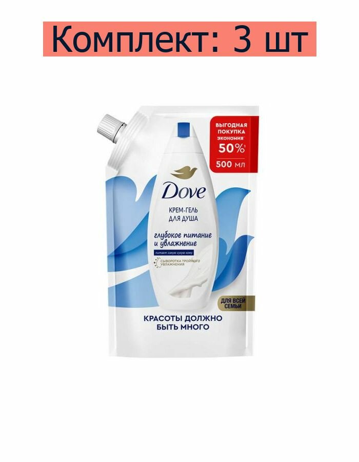 10 цен на Набор из 3 штук Гель для душа Dove Глубокое питание и увлажнение 500мл дой-пак