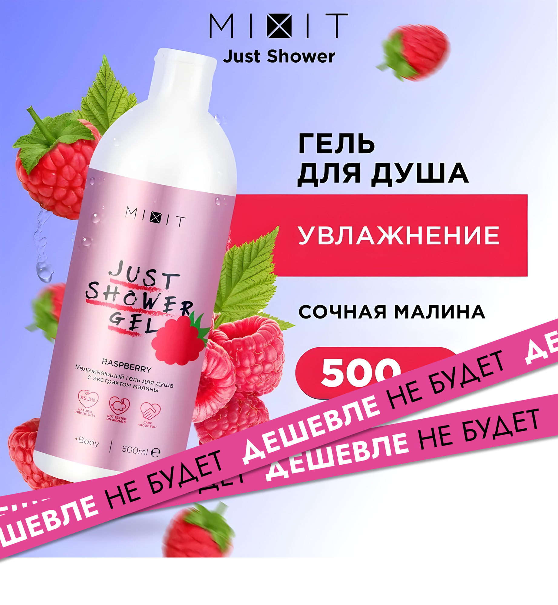 10 цен на MIXIT Увлажняющий парфюмированный гель для душа с экстрактом малины JUST SHOWER, 500 мл
