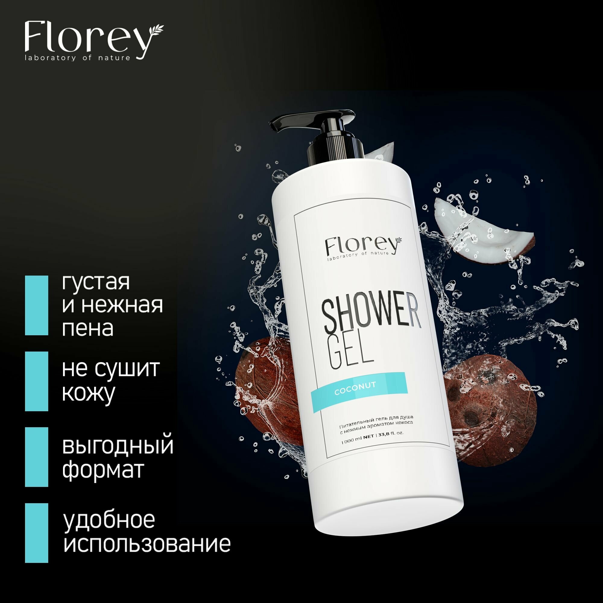 10 цен на Гель для душа Florey с ароматом кокоса, 1 л+1 л