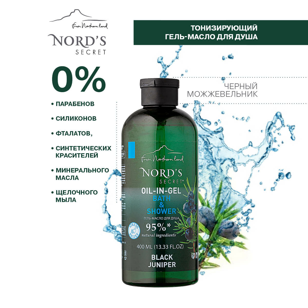NORDS SECRET Гель-масло для душа "Черный можжевельник" тонизирующий, 400 мл информация: