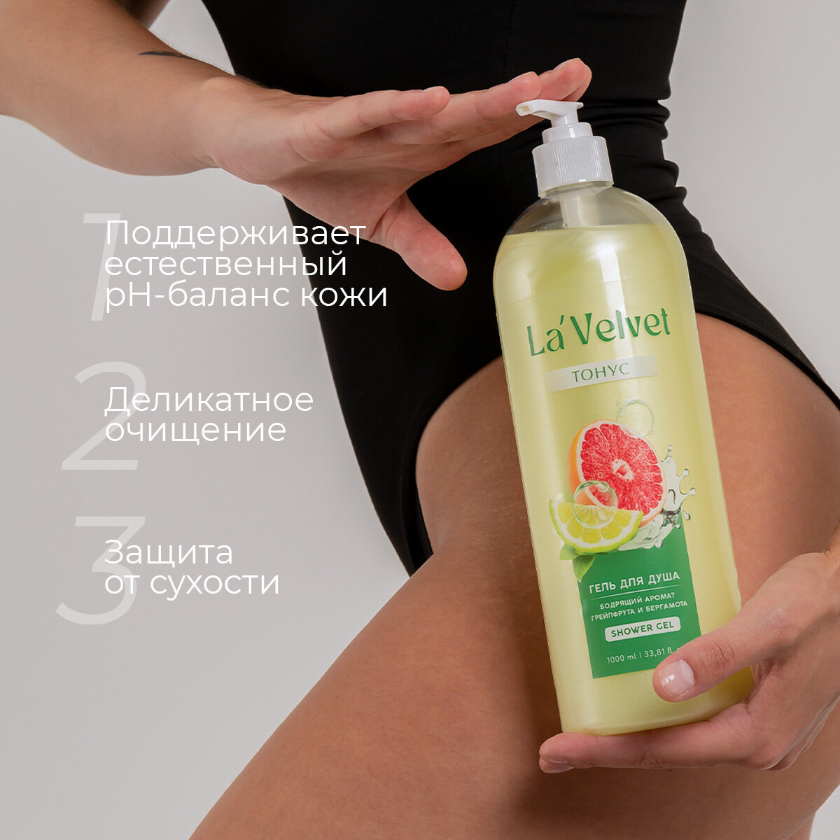 Увлажняющий парфюмированный гель для душа,1 литр, аромат грейпфрута и бергамота информация: