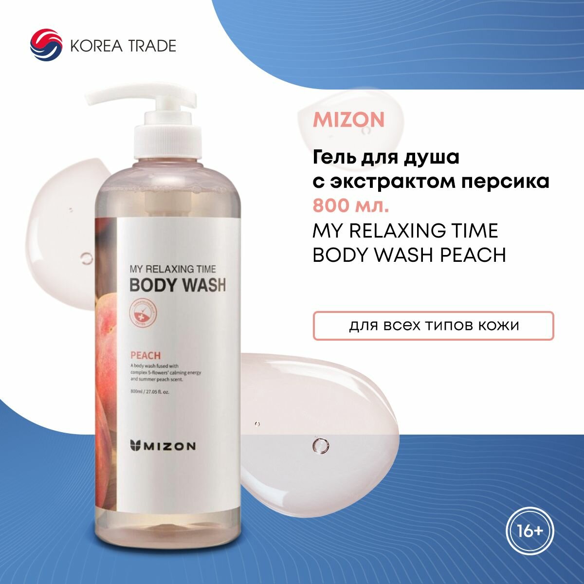 Отзывы на Mizon Гель для душа с экстрактом персика MY RELAXING TIME BODY WASH PEACH 800мл