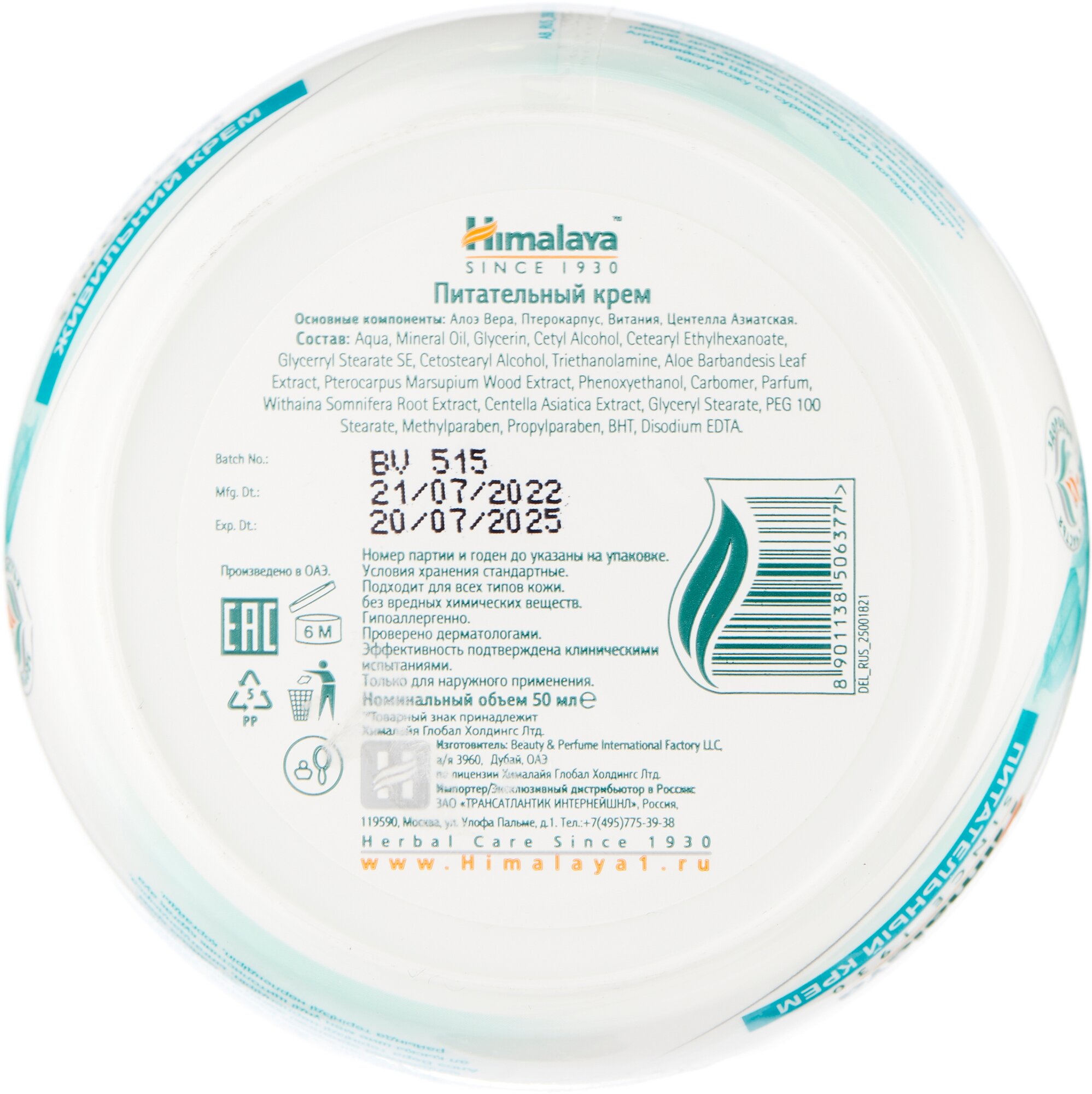 Himalaya Since 1930 Крем для лица питательный увлажняющий с Алоэ для ежедневного применения, 50 мл. информация: