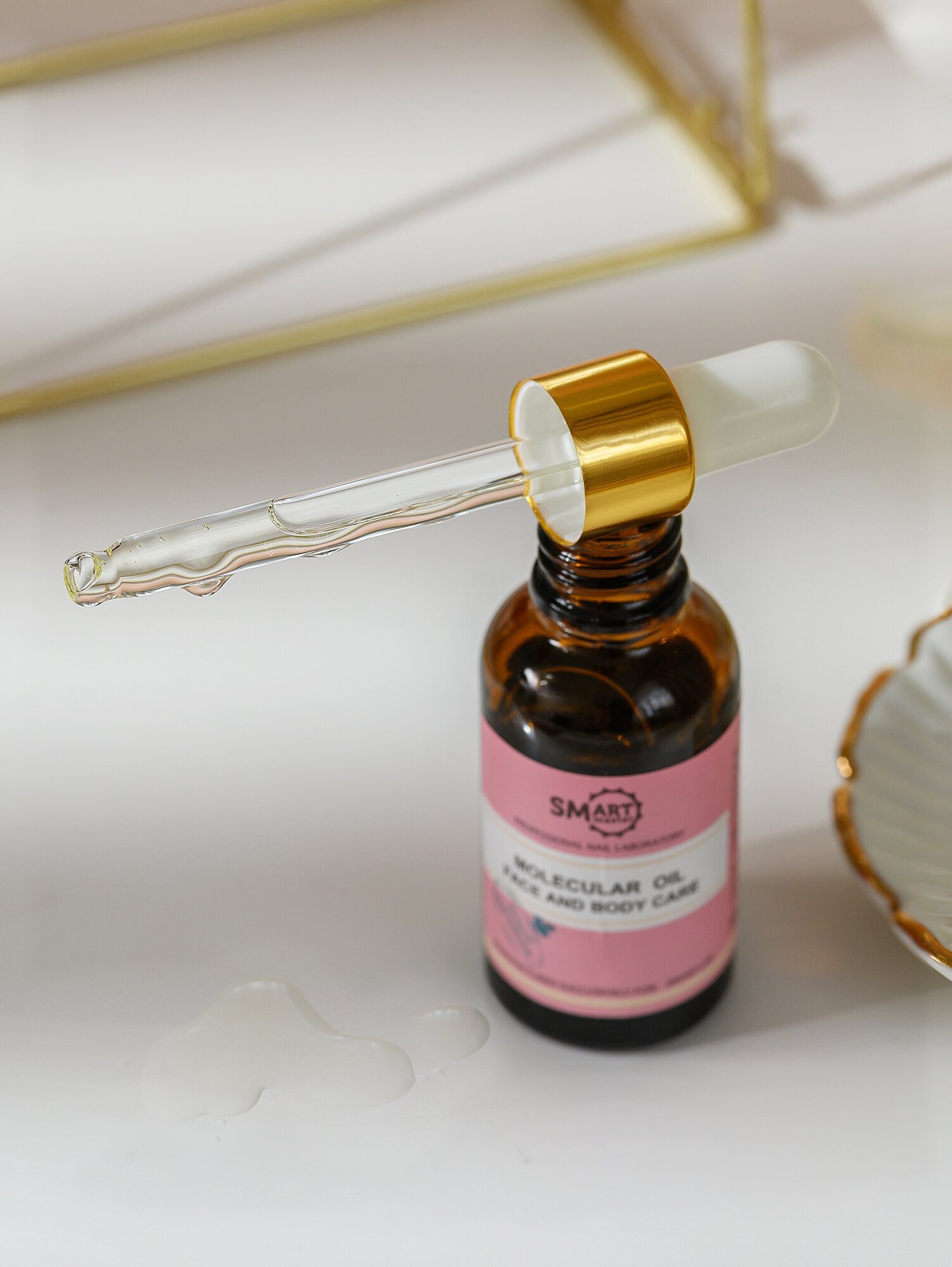 | Способ применения | Нанесите на не влажную, чистую кожу легкими, массирующими движениями. В случае сухости кожи - добавить каплю воды в каплю молекулярного смарт масла. |