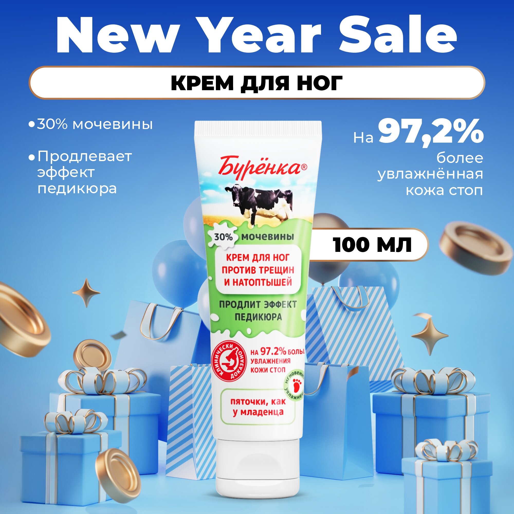 Крем для ног мочевиной 30% Буренка ультра увлажняющий Лошадиная Сила от трещин, мозолей и натоптышей против шелушений кожи, смягчающий для сухой и потрескавшейся кожи пяточек, 100мл информация: