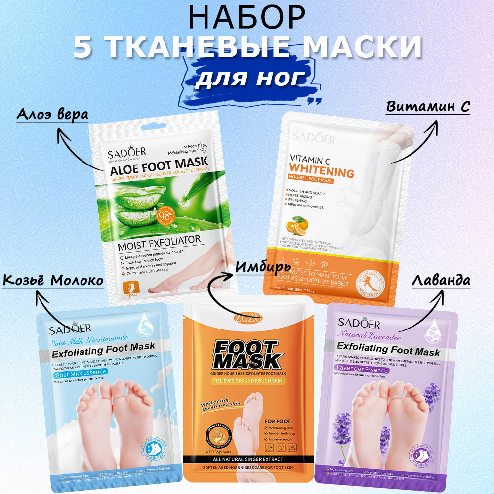 10 цен на Sadoer набор маска-носочков, питание и увлажнение для ног, 5 пар, подходят для любых типов кожи