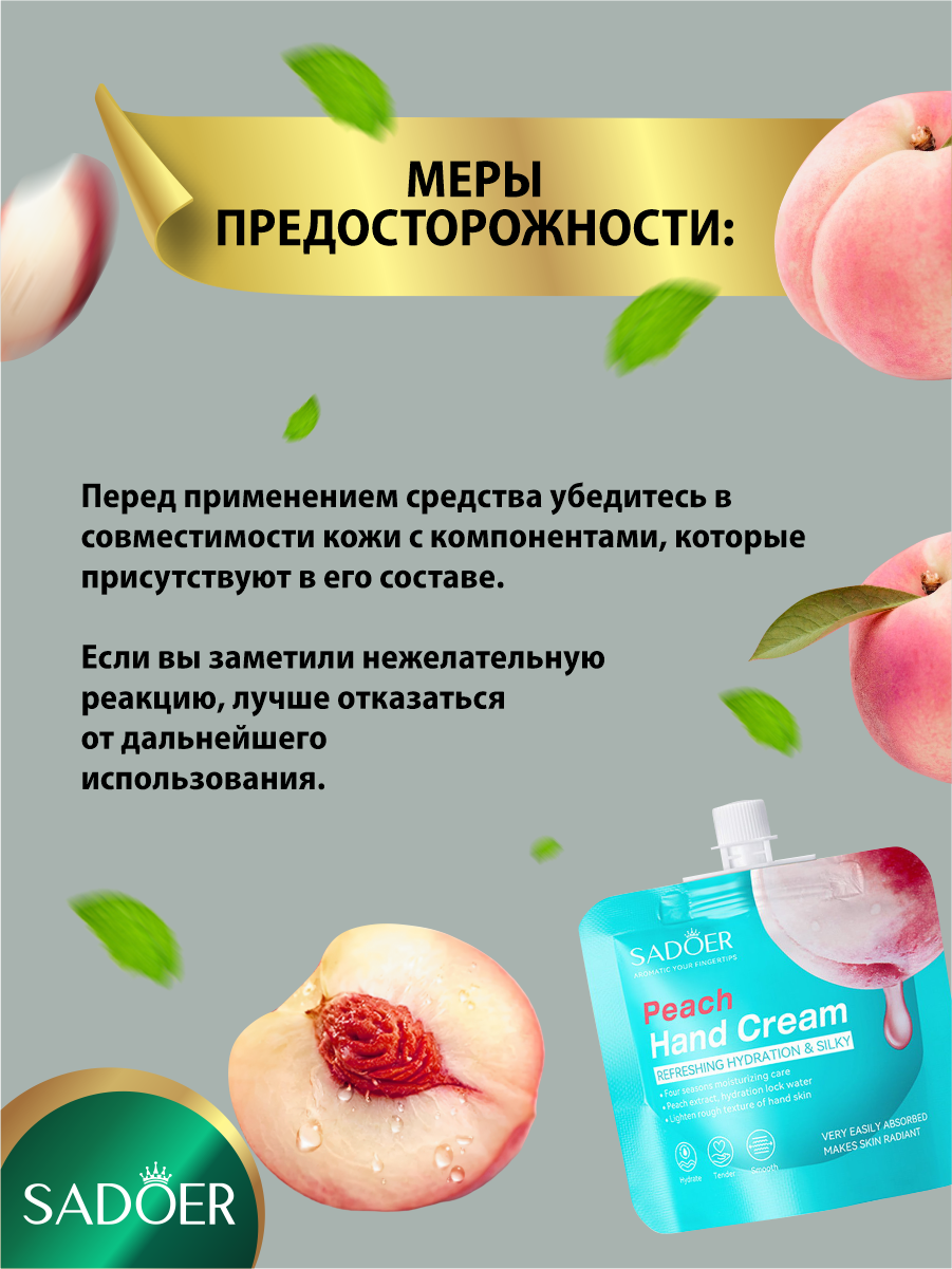Увлажняющий крем для рук Sadoer с экстрактом персика 30 гр. информация:
