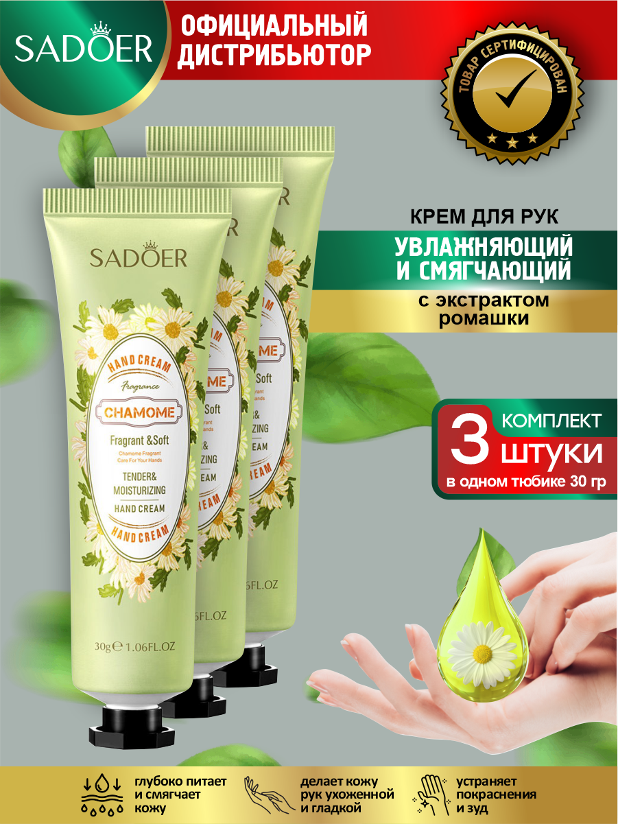 10 цен на Увлажняющий и смягчающий крем для рук Sadoer с экстрактом ромашки 30 гр. х 3 шт.