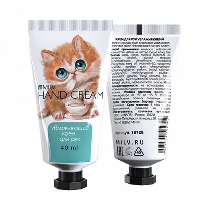 Увлажняющий крем для рук Milv, "Печенье", 40 мл информация: