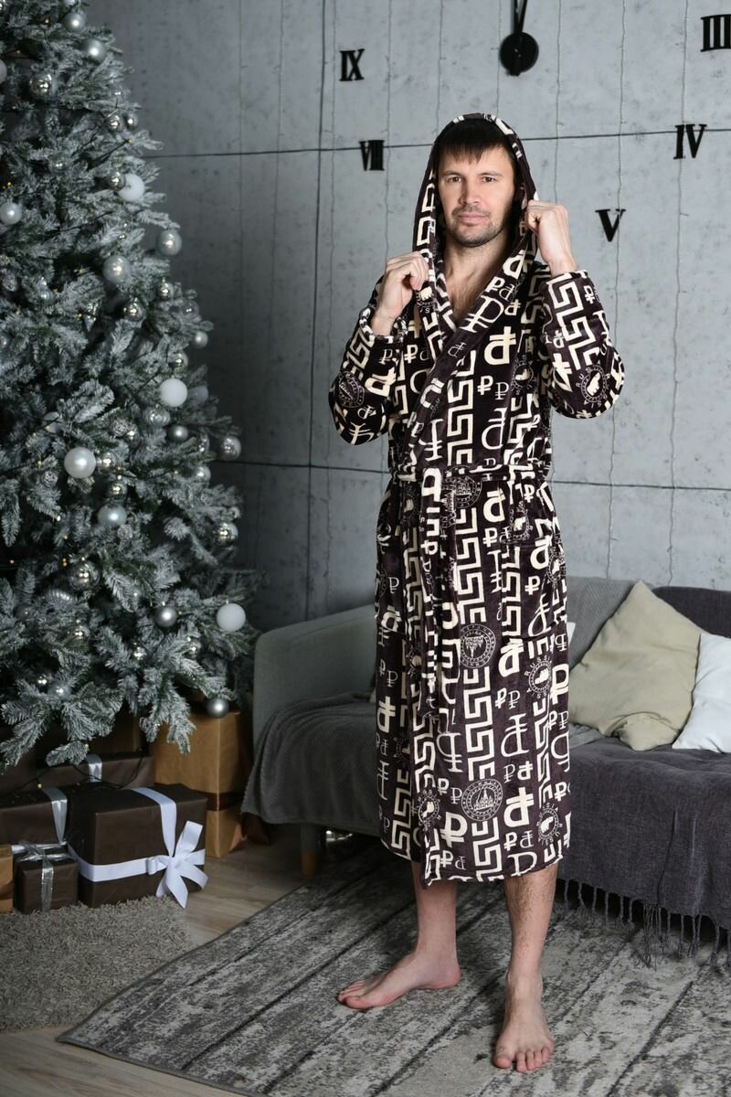 Халат мужской теплый серый с отделкой воротника цвет коричневый 2 350 ₽