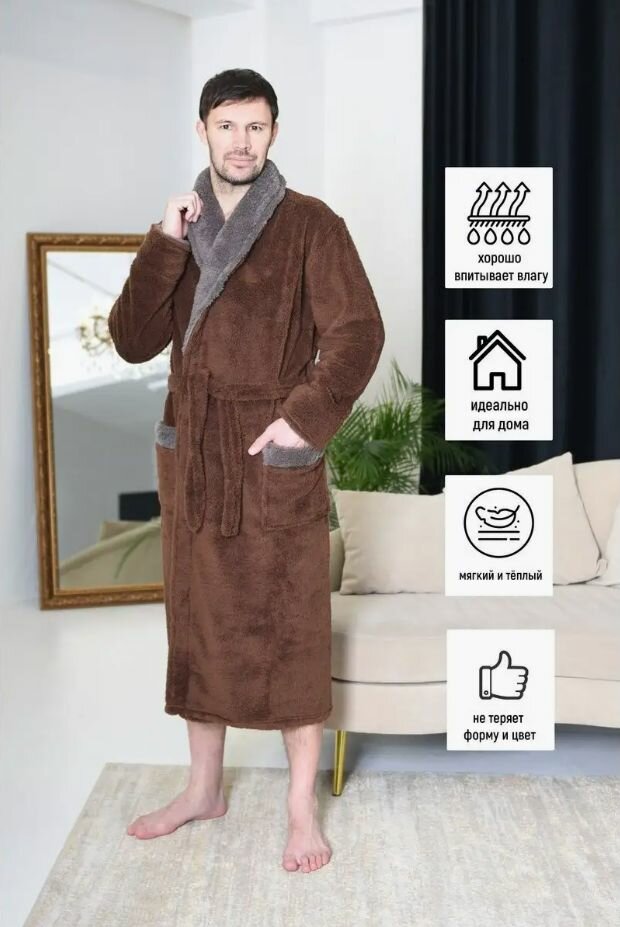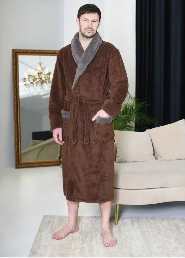 10 цен на Халат мужской теплый коричневый с отделкой воротника цвет серый