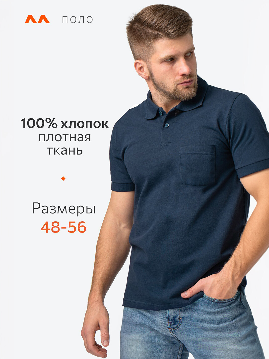 Футболка с воротником поло мужское с коротким рукавом хлопок HF9112 т.синий 56 1 225 ₽