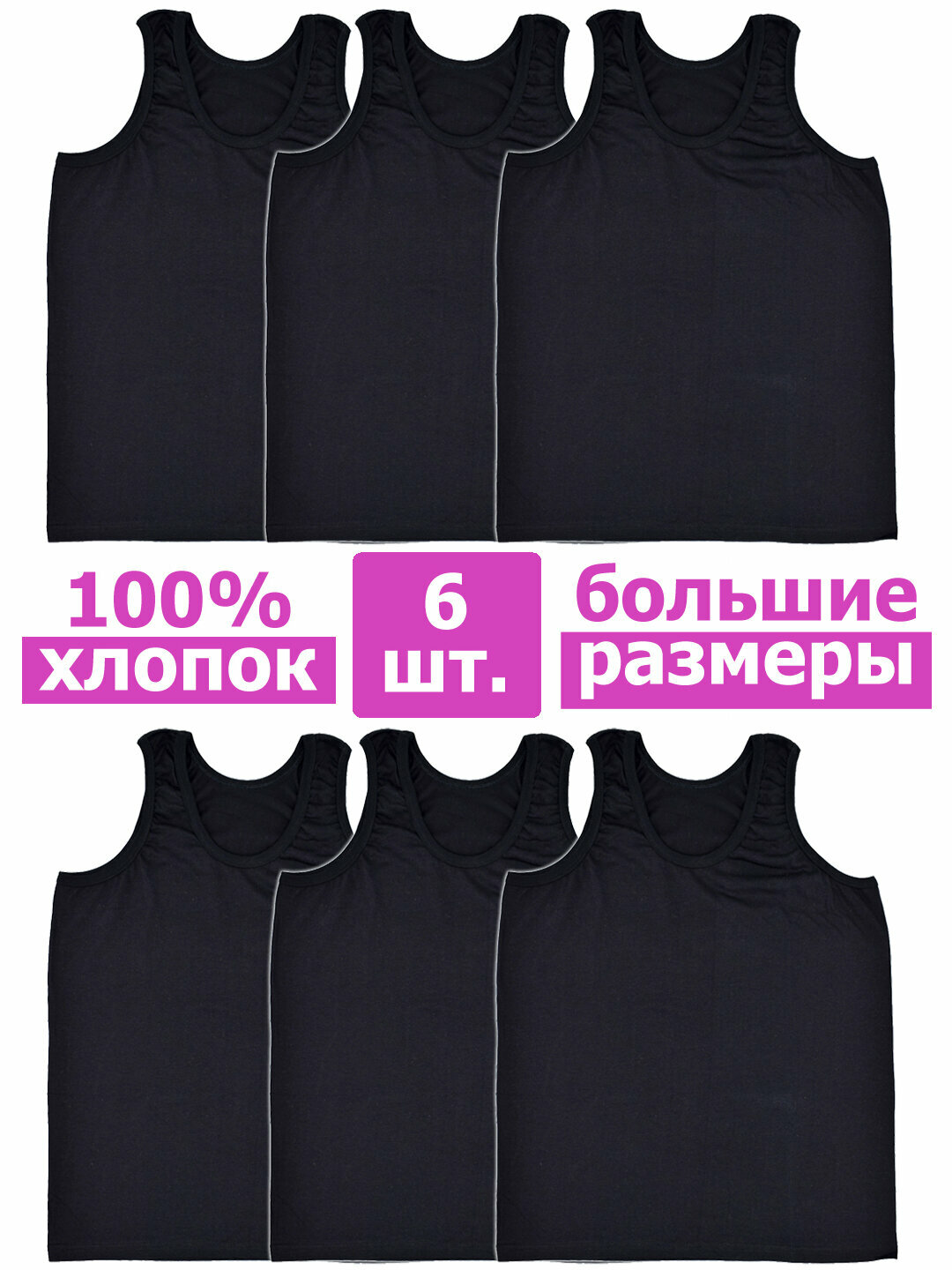 ММ-0006 Комплект мужских маек большого размера амтекс - 6 штук 70 Черный информация: