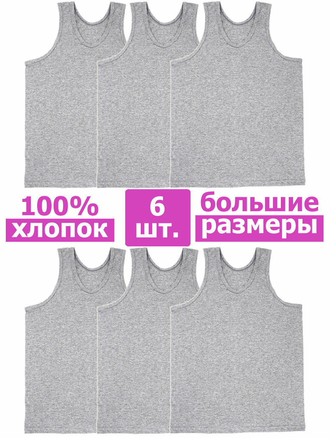 ММ-0006 Комплект мужских маек большого размера амтекс - 6 штук 64 Серый информация:
