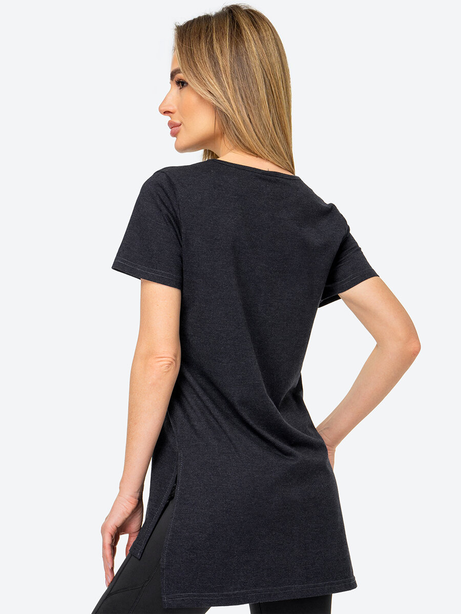 Футболка женская длинная однотонная трикотажная с разрезами HappyFox, HFG2010 размер 50, цвет антрацитмеланж информация:
