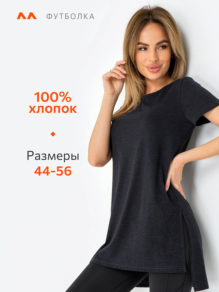 Футболка женская длинная однотонная трикотажная с разрезами HappyFox, HFG2010 размер 50, цвет антрацитмеланж 1 250 ₽