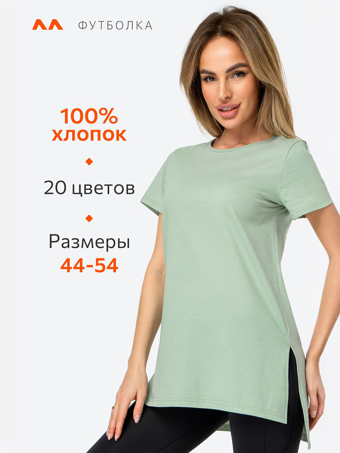 10 цен на Футболка женская длинная однотонная трикотажная с разрезами HappyFox, HFG2010 размер 46, цвет полынь