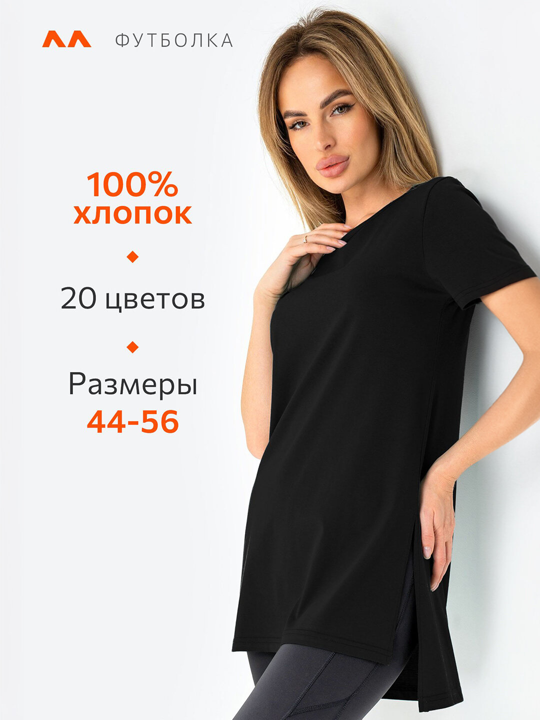 10 цен на Футболка женская длинная однотонная трикотажная с разрезами HappyFox, HFG2010 размер 52, цвет черный