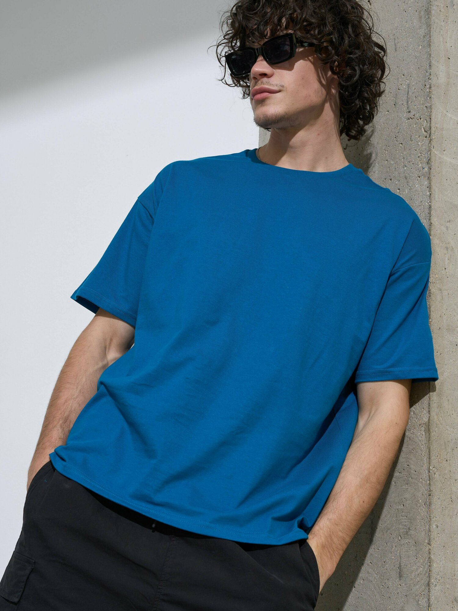 Футболка оверсайз хлопок Uzcotton однотонная базовая свободная плотная Синий46-48\M 640 ₽