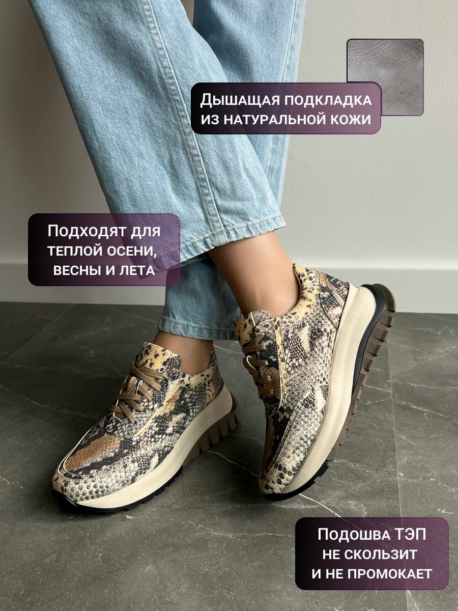 10 цен на Кроссовки женские спортивные на платформе натуральная замша , Reversal, 75010_Кобра-золото-кожа-(Черный-какао)-38