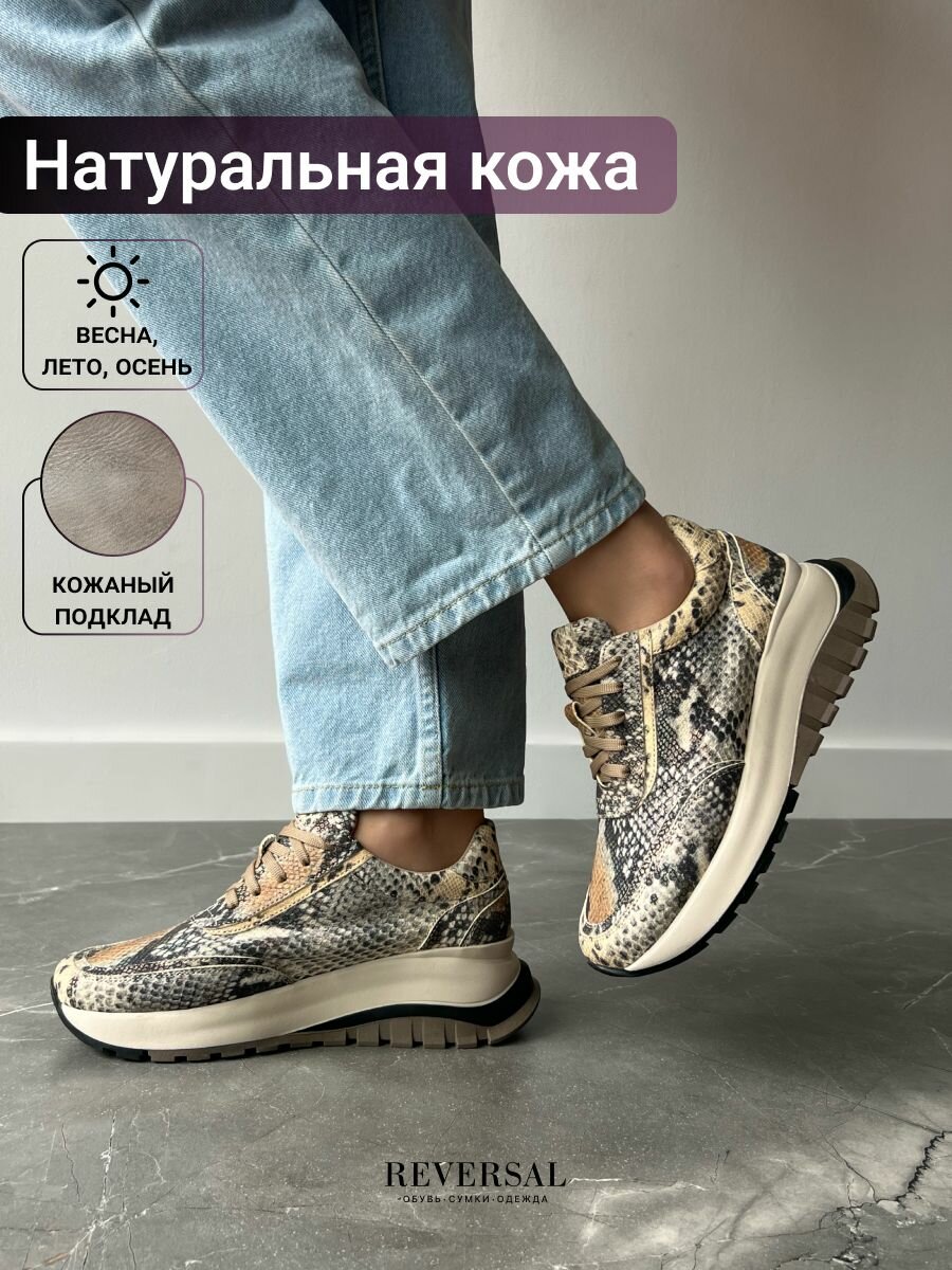 Кроссовки женские спортивные на платформе натуральная замша , Reversal, 75010_Кобра-золото-кожа-(Черный-какао)-38 информация: