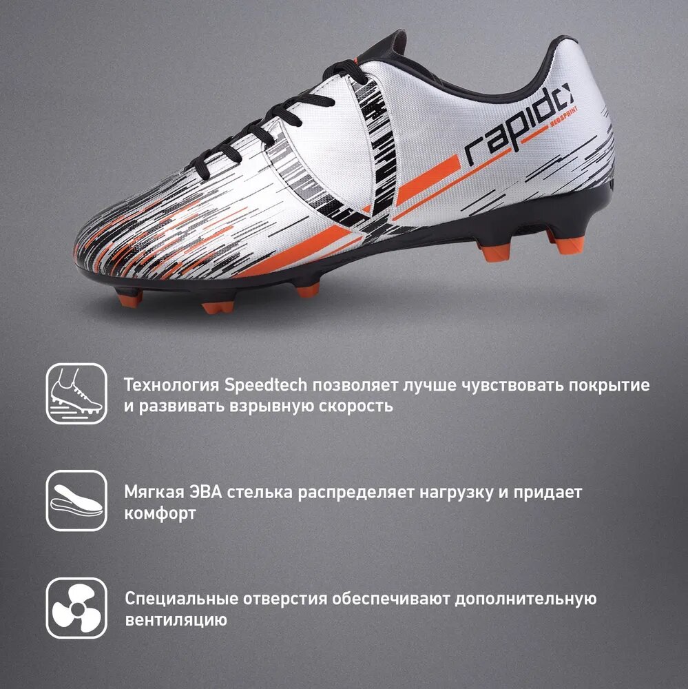Бутсы футбольные Jögel Rapido Fg Silver/black, детский размер 28 информация: