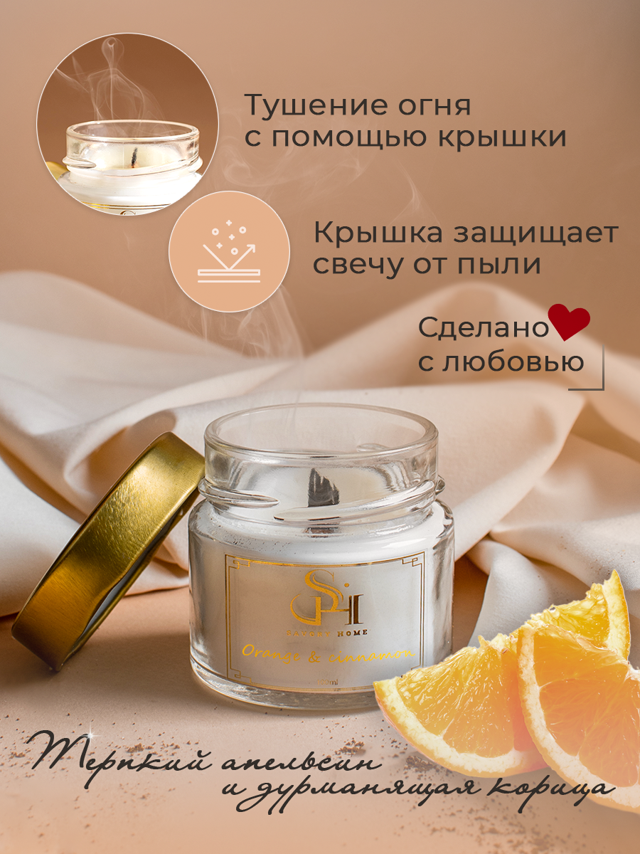 Свеча ароматическая "Апельсин и корица" 100мл, Savory Home информация: