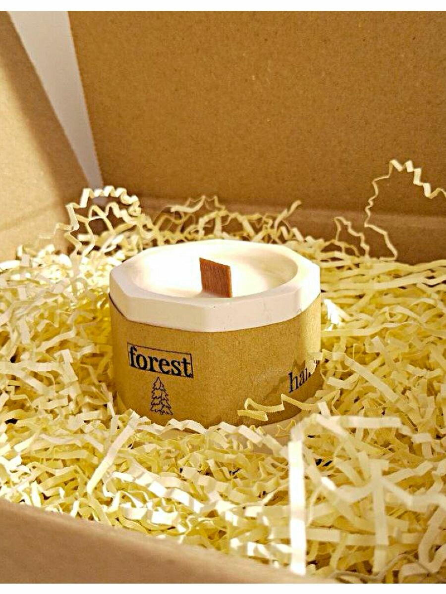 Свеча AROMALAND Хвойный Лес, с деревянным фитилём, в гипсовом подсвечнике, 50 мл 418 ₽