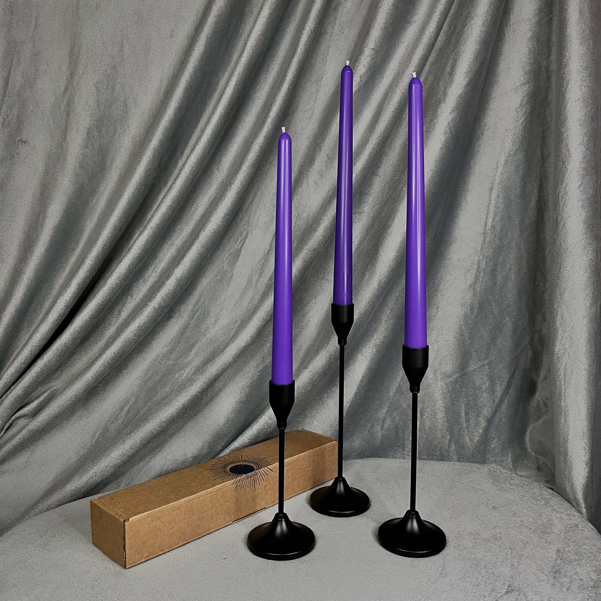 Набор конических свечей "Friday" (25.5x2.2 см, 3 шт.) ручной работы. Декоративные свечи фиолетового цвета. информация: