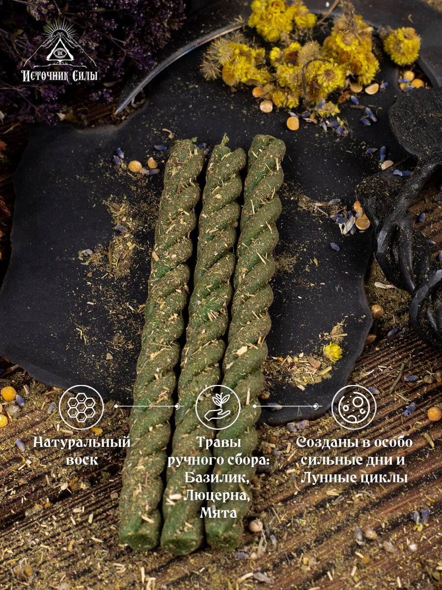 Свечи зеленые восковые скрутки с травами на деньги 6 шт. 408 ₽