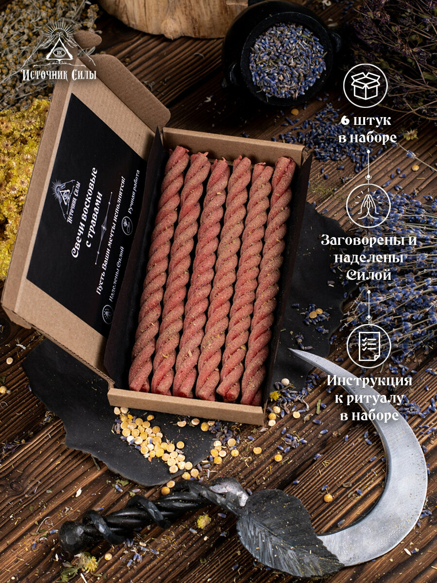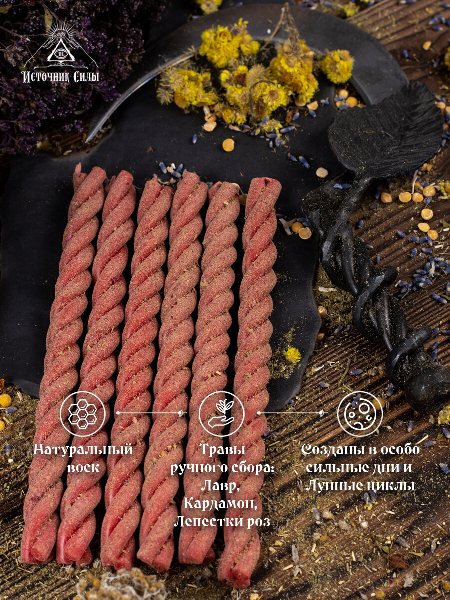 Магические свечи восковые красные скрутки с травами на любовь 3 шт. 331 ₽