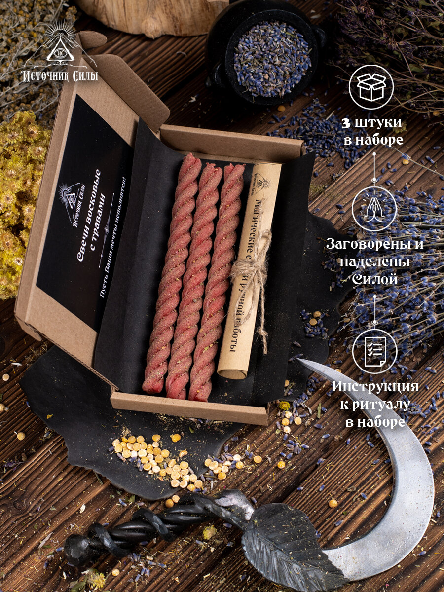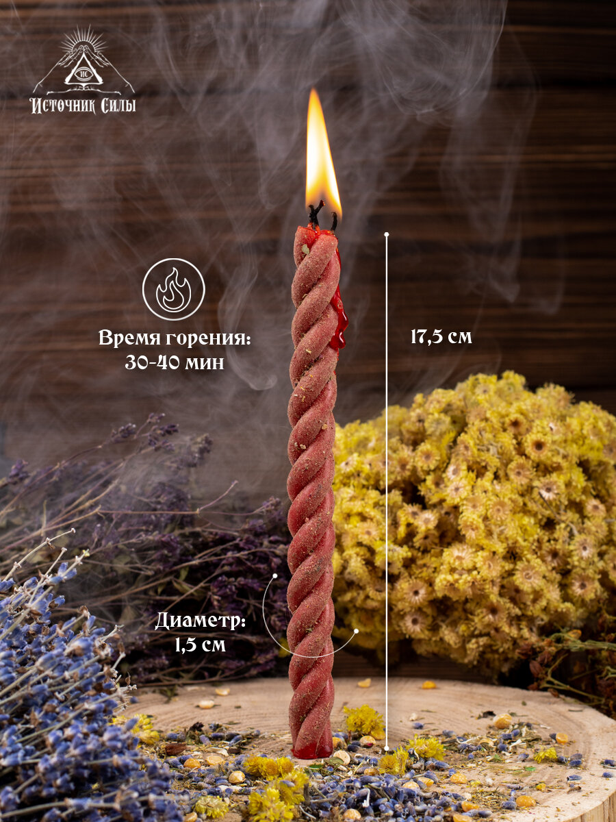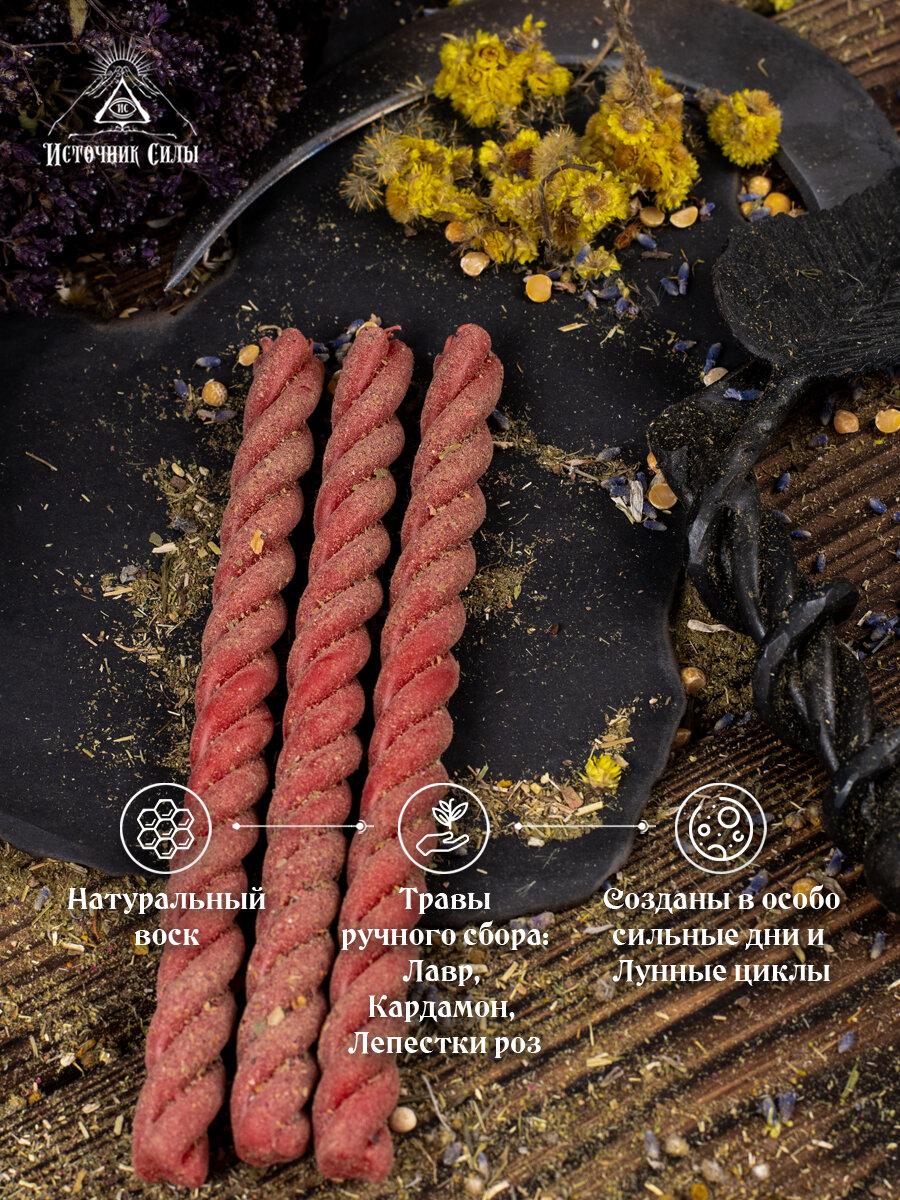 Свечи восковые красные скрутки с травами на любовь 3 шт. информация: