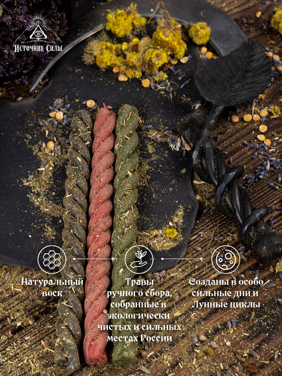 Свечи восковые скрутки Чистка. Любовь. Деньги 3 шт. информация: