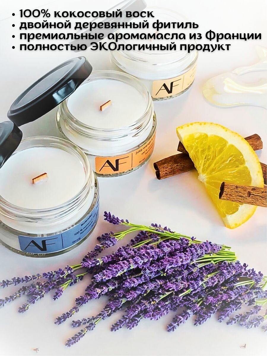 Ароматизированная свеча ART FEEL с запахом лаванды / Двойной деревянный фитиль с треском /100мл / 25ч горения / Ручная работа / Handmade 313 ₽