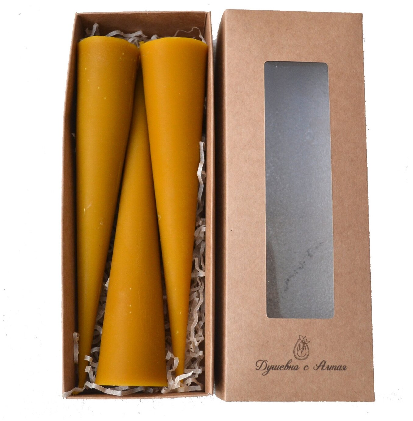 Набор свечей из пчелиного воска "Конусы". Желтые восковые свечи информация: