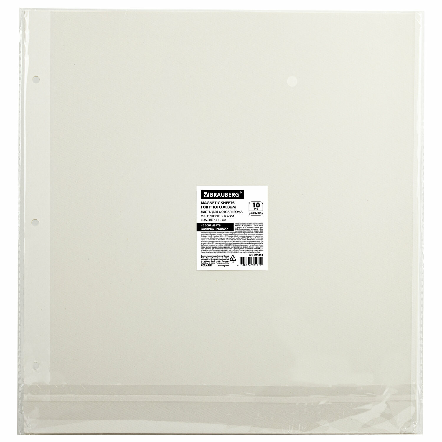 Листы для фотоальбома на кольцах магнитные дополнительные, блок из 10 шт., 30x32 см, Brauberg, 391313 информация: