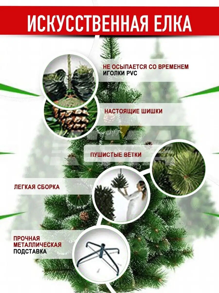 Искусственная Елка , Ель искусственная/ ель с шишками и инеем/ новогодняя с шишками и инеем, Из ПВХ, 210 см 3 290 ₽