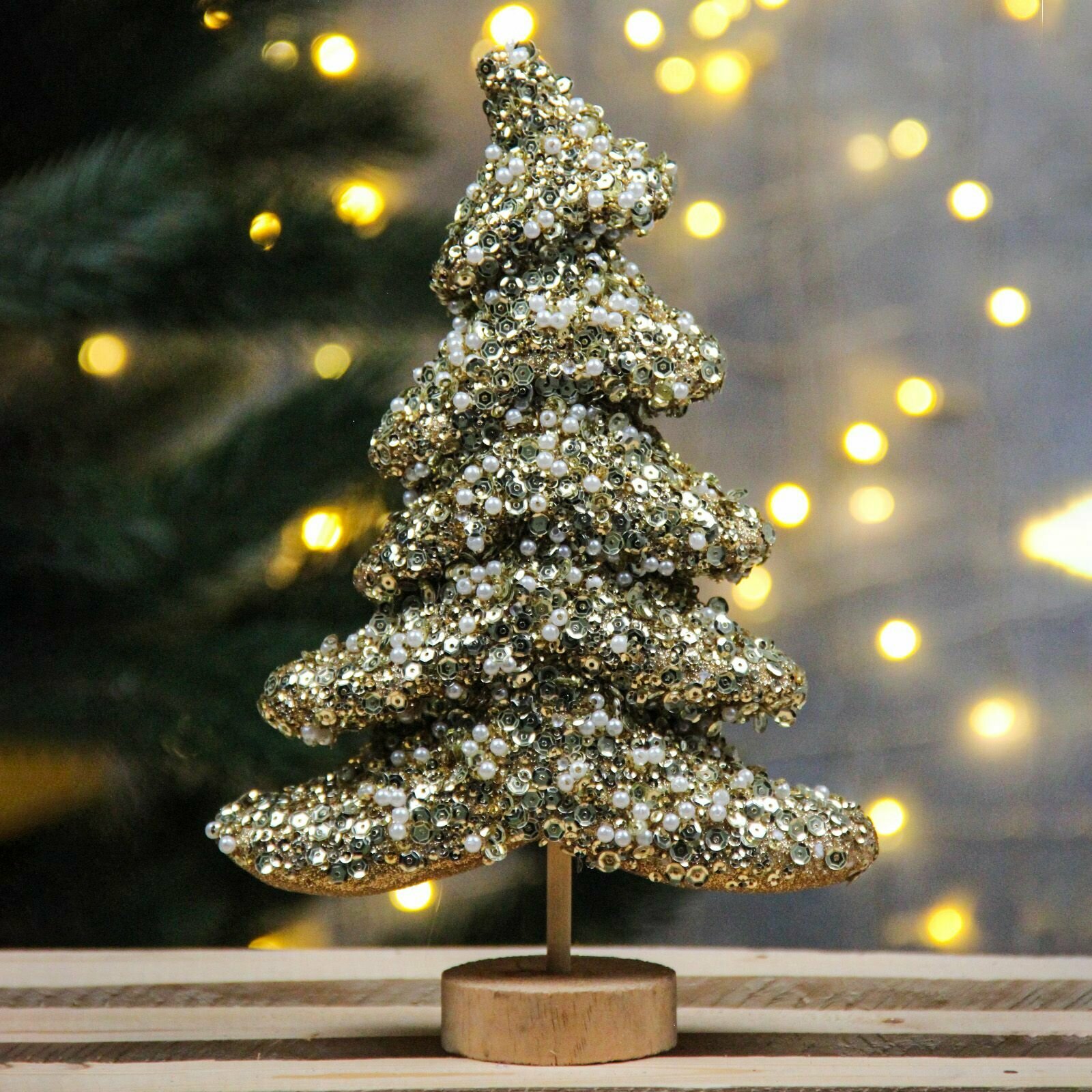 10 цен на Новогодняя фигура Елочка на деревянной подставке 28см, золотая