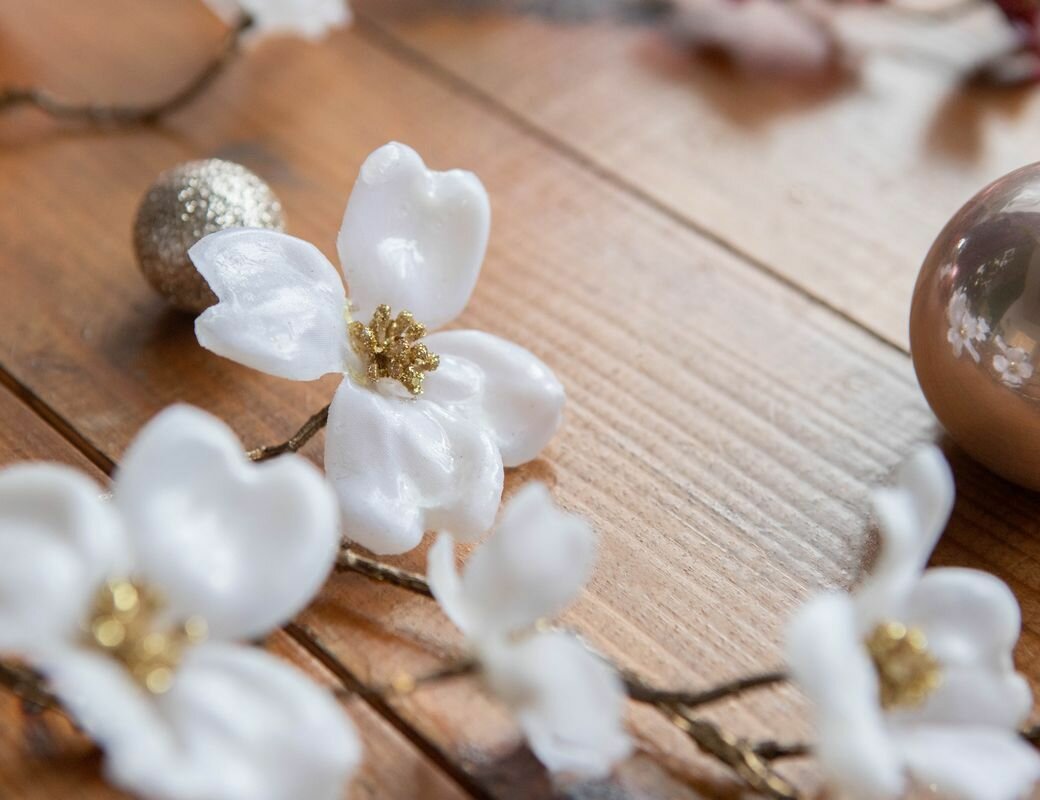 Декоративная ветка, белая с золотистым, 8x33x92 см, Kaemingk