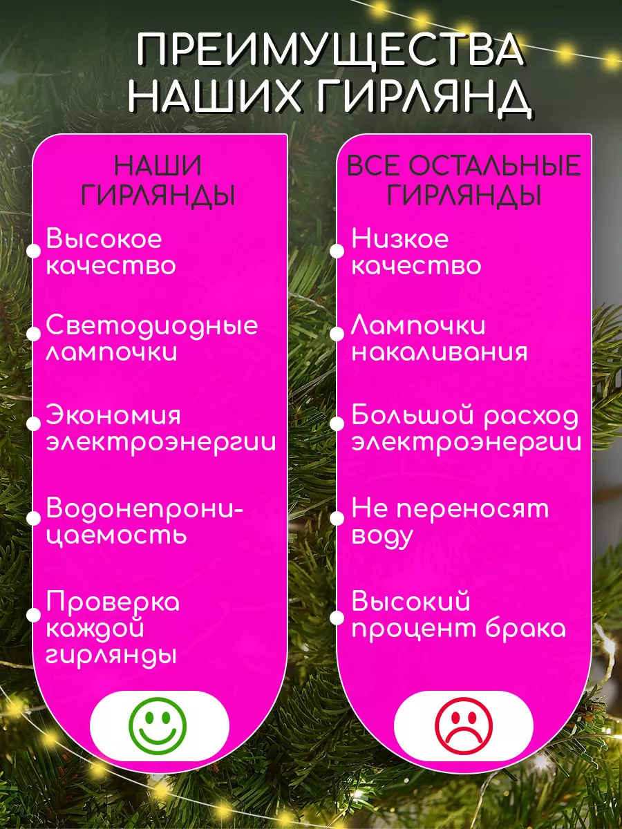 Гирлянда роса на елку 20м новогодняя светодиодная информация: